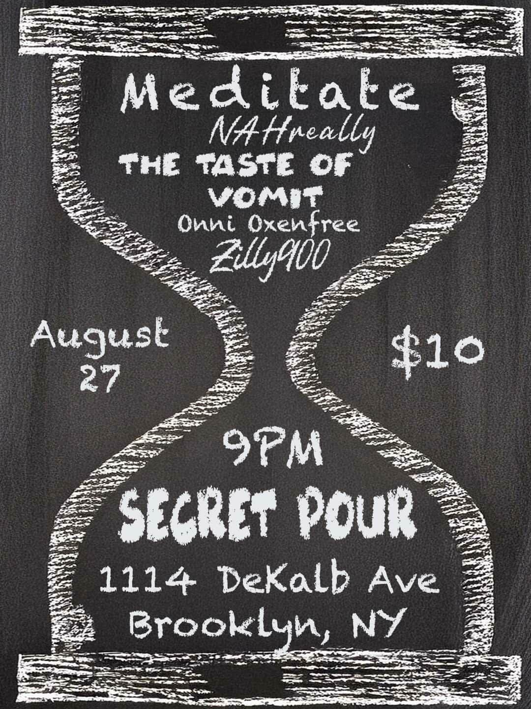 Last but not least, I’ll be closing out the month back at Secret Pour on 8/27 for The Taste of Vomit’s NYC tour date. TOV was nice enough to ask me to perform alongside Meditate, Zilly900, and Onni Oxenfree. So if you can’t make the 13th in NYC, don’t fret! I’ll be back rhyming on the 27th. Or maybe I’ll see you twice…